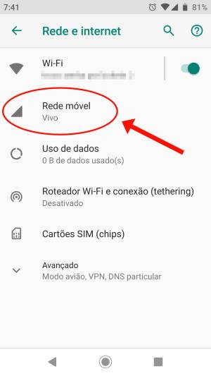 3. Toque em “Rede móvel”.