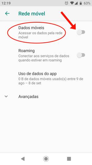 4. Toque em “Dados móveis” para ativar.