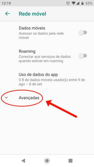 7. Ainda na mesma tela, toque em “Avançado” para expandir as opções.