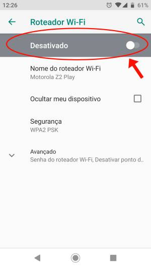 6. Agora é só tocar no topo para ativá-la. Onde está escrito “Desativado” vai aparecer “Ativado”.