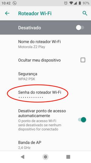 8. Toque na Opção “Senha do roteador Wi-Fi” e escolha a senha desejada. Em seguida toque em “OK”.