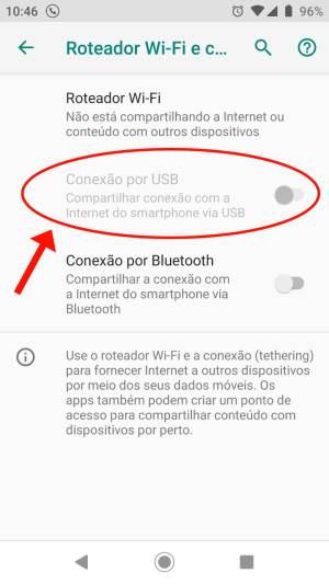 Este recurso funciona por USB (escolha Bluetooth, caso o seu celular esteja carregando enquanto disponibiliza a internet).